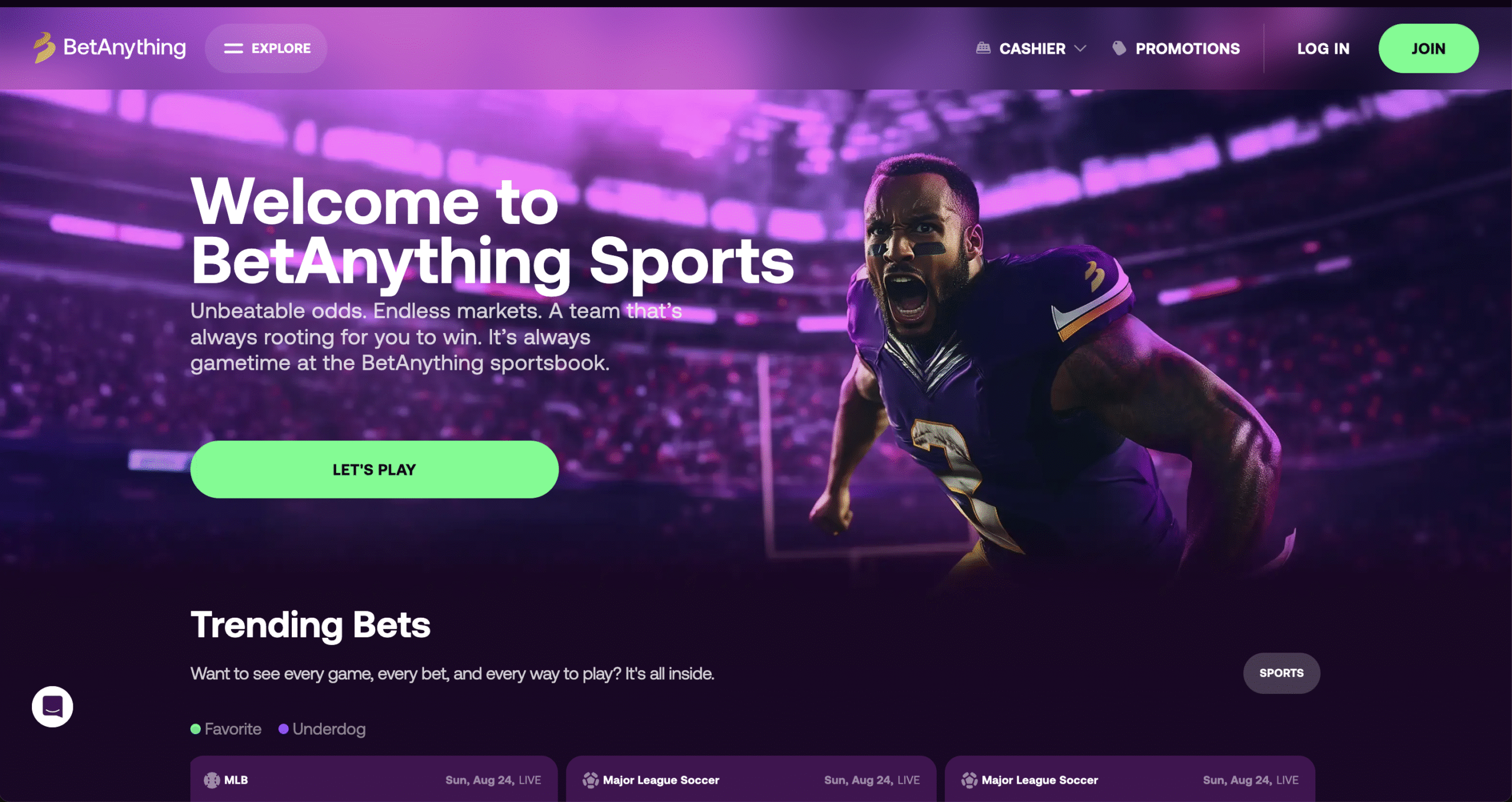 BetAnything Sportsbook Review (2025): Reduced Juice, Crypto Banking, No‑Frills Speed